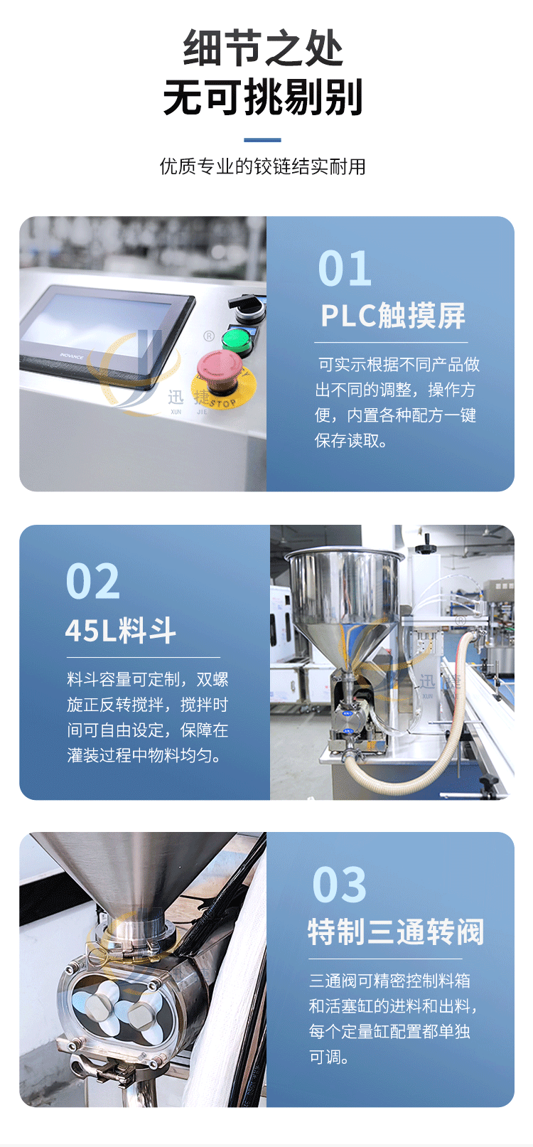 五極灌裝機(jī):極快-單頭2200瓶/時(shí) 極簡(jiǎn)-操作簡(jiǎn)單 極廣-啥啥都能灌 極穩(wěn)-24小時(shí)不停機(jī)  極準(zhǔn)-200g誤差小于1g。它可以和真空旋蓋機(jī)搭配使用。
