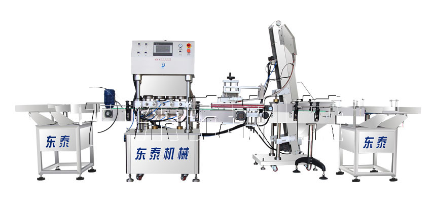 旋蓋部分:機(jī)器采用自動下蓋方式,無需過多人工參與,自動下蓋抽真空旋蓋,整機(jī)灌裝包裝流程一氣呵成。